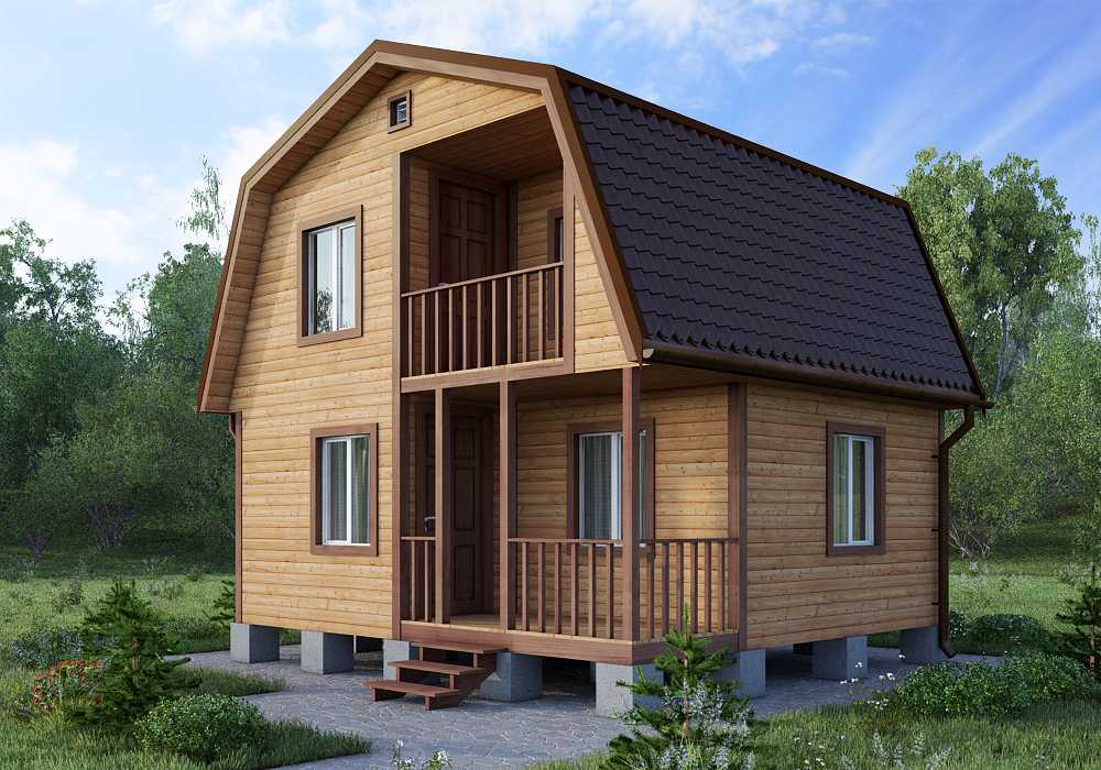Благодаря использованию только качественного профилированного бруса, или как вариант клееного, все деревянные поверхности могут быть использованы вами и без отделки. А если учитывать то что деревянные дома значительно легче чем, например кирпичные их можно возводить на столбчатых фундаментах что опять же положительно отражается на цене дачного домика. В наших дачных домиках 6х6 благодаря продуманной планировке сможет разместиться вся семья, пусть даже и не большая. А на втором мансардном этаже можно размещать гостей или использовать как основное помещение. Стоит упомянуть что все небольшие дачные дома от нашей компании могут использоваться и для проживания в них сезонно и для кругогодичного жилья (в данном случае толщина стен будет увеличена до 150 мм). Это также касается и мансарды, ее стены также могут быть дополнительно утеплены специальным утеплителем, что позволит проживать круглогодично. От размера дома зависит количество расположенных на мансарде комнат. Второй этаж полностью отделан вагонкой и перегородки между комнатами каркасно-щитовые. А перегородки первого этажа сделаны из бруса. Но дизайн дома не нарушается снаружи он остается полностью деревянным, недорогим, удобным дачным домом.