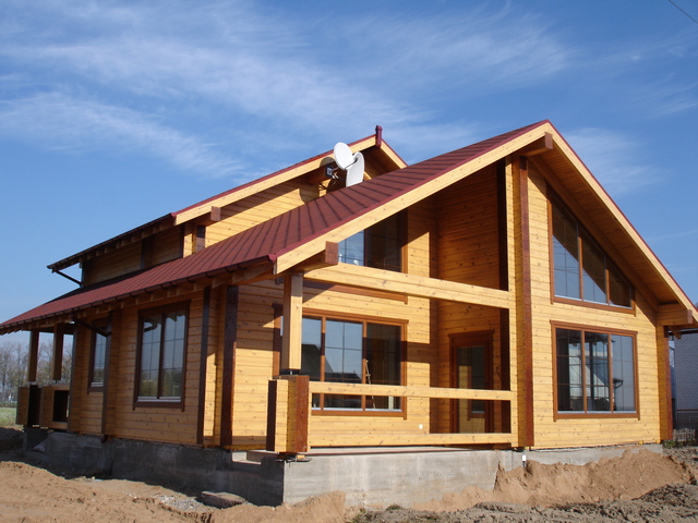 Если для строительства выбран клееный брус, то необходимо понимать, что древесина, из которой он изготовлен, является высушенной, что исключает усадку дома, либо она будет минимальной. Сроки возведения дома из клееного бруса также являются минимальными – от нескольких недель до одного месяца. Благодаря технологии производства профилированного клееного бруса, возведение коробки дома может быть выполнено в любое время года, в том числе зимой. Достаточно иметь на участке готовый фундамент и уже через 3-4 недели на нем будет установлена готовая коробка дома. Каждый брус в конструкции коробки очень плотно прилегает друг к другу, что делает высокими теплоизоляционные качества, а также защищает от попадания влаги между ними и увеличивает срок эксплуатации деревянного дома в целом.